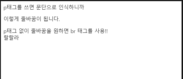 p태그 없이 줄바꿈을 원하면 br 태그를 사용!! <br>